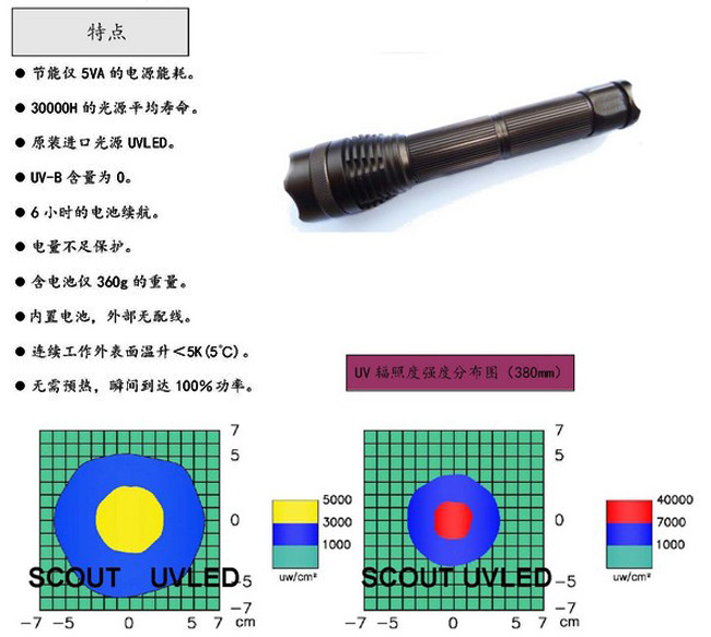 | UV4020-10K | 探傷燈,黑光燈 | 常用 | 10000uW/cm2 | 直徑:220mm | <20lux |