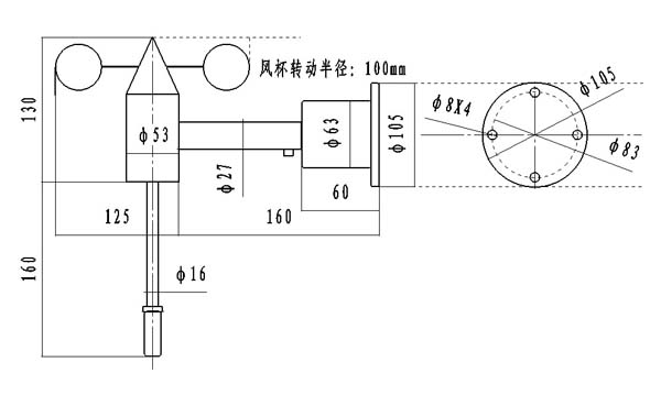 風速,風向2個傳感器, 是分體的.價格經濟一些. |