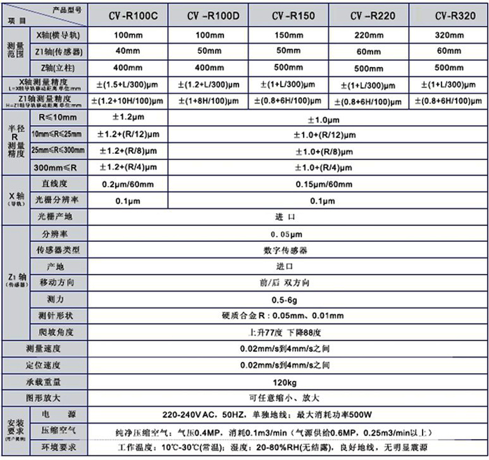 型號 名稱 X軸量程 Z軸量程 半徑R
