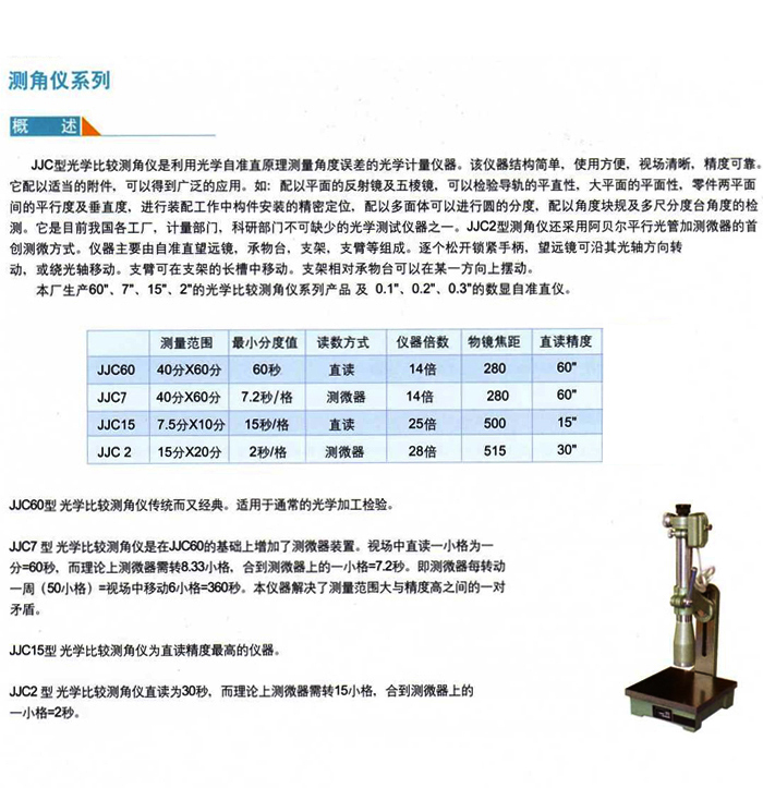 JJC7 光學比較測角儀 40分×60分 7.2秒/格 測微器 14倍 280 60″