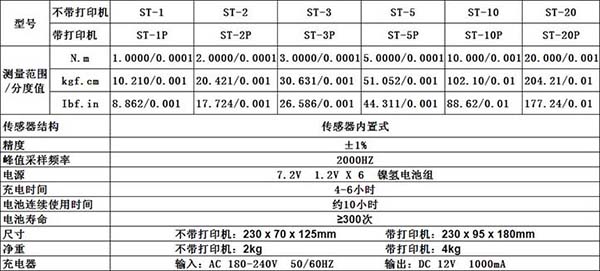 | ST-2000P | 數(shù)顯扭矩測(cè)試儀 | 2000.0N.m | 0.1 | 帶打印機(jī) |