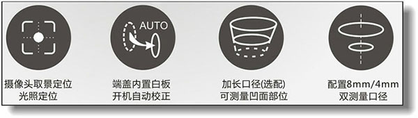 攝像頭取景定位和光照定位(NH310有雙重定位的新功能) 端蓋內(nèi)置白板,開機(jī)自動(dòng)校驗(yàn)(NH310配置) 加長(zhǎng)口徑(選配),可測(cè)量凹面部位 聯(lián)系電話,021-6573 0171 |