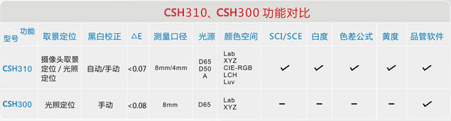 | CSH310 | 便攜式精密測(cè)色儀 | 8/d 8mm+4mm口徑 |