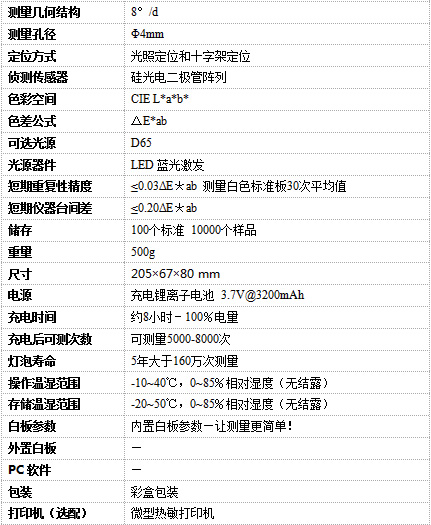 | CM-215 | 便攜式精密色差儀,色差計 | 8/d | LED | 請入內頁查看 | ΔE*ab: 0.08 |