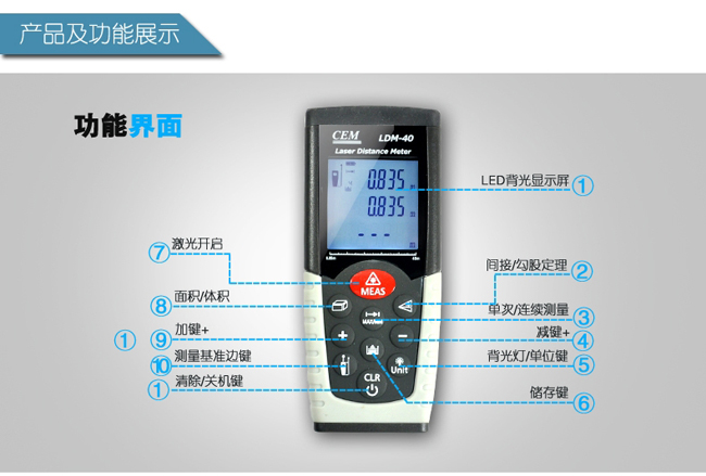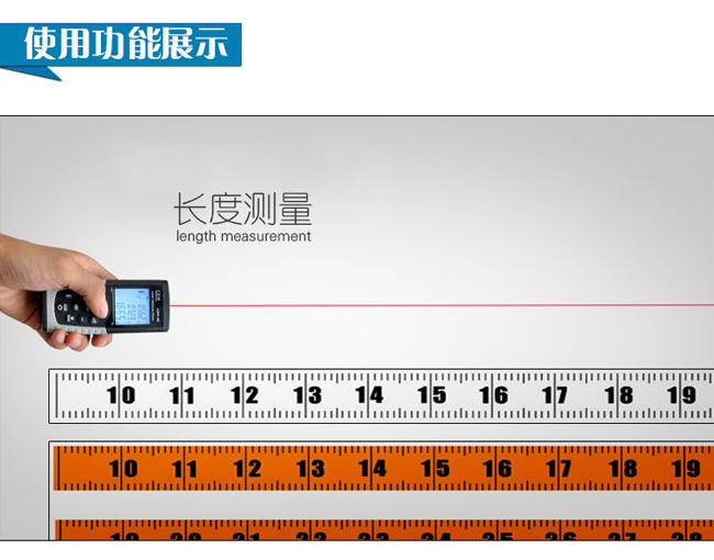 本測距儀可廣泛應用于家庭/工業/商業的裝修、裝橫和設計等領域。具體可用于地板瓷磚鋪設;墻體涂料面積估算;家具櫥柜制造測量;工地施工距離/面積/體積測量;房產中介測量公寓面積和估價報價等.