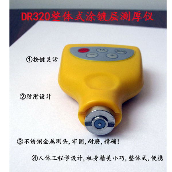 是采用電磁感應原理方法,按國家行業:GB/T 4956-1985標準,能快速、無損傷、精密地進行磁性金屬表面涂鍍層厚度的測量。可無損地測量磁性金屬基體(如:鋼、鐵、鎳)上非磁性覆層的厚度(如:油漆、電泳、琺瑯、橡膠、粉未、搪瓷、防腐層,鍍鋅、鉻等);DR320涂層測厚儀集成了便攜式,一體式,智能數顯等特點,儀器精美小巧,采用金屬測頭,讓現場測試再穩定,更牢固.