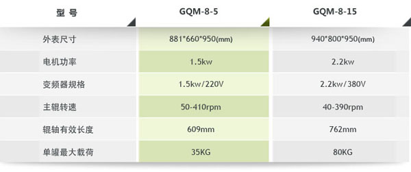 | GQM-(10-15)-8 | 罐磨機 | 15L | ≤10mm |