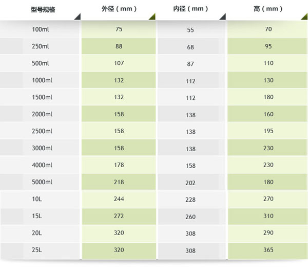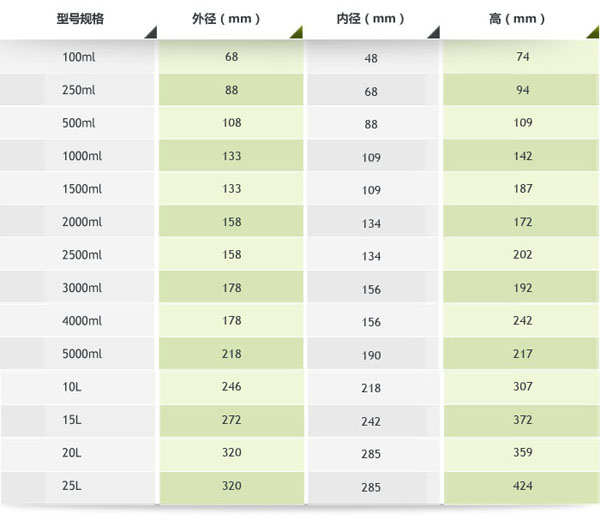 500ml 1L 1.5L 2L 3L 4L 5L 8L 10L |