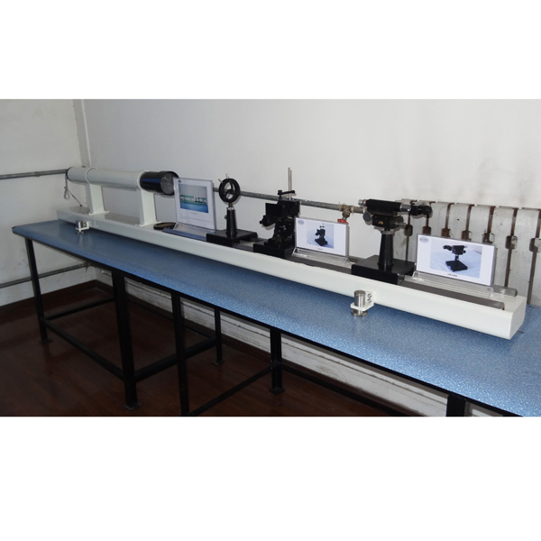 二 主要性能指標(biāo) F500平行光管 焦距:500mm 有效孔徑:Φ80mm 分辨率:1.8″ 視場:3°4′ 2.讀數(shù)顯微鏡 測微目鏡:15× 物鏡放大率:4×/10× 機(jī)械筒長:160mm 分劃格值范圍:0-8mm 高低升降范圍:10mm 縱向移動范圍:50mm 三 儀器主要裝置 1、F500平行光管 1套 2、讀數(shù)顯微鏡 1套 3、透鏡夾持器 1套 4、支架及1米導(dǎo)軌 1套 5、直流可調(diào)電源 1套 6、十字分劃板 1件 7、星點(diǎn)板(Φ0.1、Φ0.2)各1件 8、分辨率板(2-3號)各1件 9、玻羅板1塊