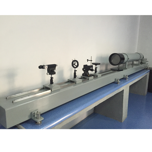 XGJ-500型光具座 一 用途 XGJ-500型光具座是一種像質(zhì)很好,附件眾多,使用方便,用途廣泛的綜合性光學(xué)測量儀器,主要用于各種光學(xué)零件、部件及光學(xué)系統(tǒng)的像質(zhì)研究及光學(xué)基本量的測定,儀器配有各種附件,能作以下幾個(gè)方面的測量。 1、用自準(zhǔn)前置鏡可測量平面平板玻璃的平行差以及棱鏡的光學(xué)平行差及雙像差。 2、用玻羅法測定物鏡的焦距,也可直接測量截距,用可調(diào)前置鏡法可確定棱鏡、平面鏡及其組合系統(tǒng)的小焦距。 3、對望遠(yuǎn)系統(tǒng)作視度、視差、放大率、出瞳直徑和出瞳距離等參數(shù)的測量。 4、用分辨率板法確定物鏡、棱鏡及其組合系統(tǒng)的分辨能力。 5、用星點(diǎn)法檢驗(yàn)透鏡、棱鏡及其組合系統(tǒng)的成像質(zhì)量。 儀器的主要部分包括:0.5米平行光管、帶導(dǎo)軌的底座和各種不同用途的附屬裝置,如透鏡夾持器、觀測用顯微鏡、前置鏡、及各類輔助支座等,這些附屬裝置都可以安裝在導(dǎo)軌上。鑒于上述用途,KFG-500型光具座對于光學(xué)儀器的生產(chǎn),科研及有關(guān)教學(xué)單位都是非常適用的。