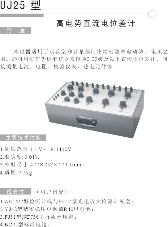 | UJ25 | 高電勢(shì)直流電位差計(jì) | 指針 | 1μV~1.911110V | 0.01% | |