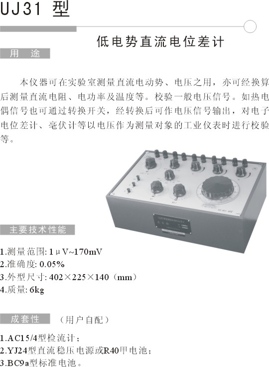 | UJ31 | 低電勢(shì)直流電位差計(jì) | 指針 | 1μV~170.0mV | 0.05% |