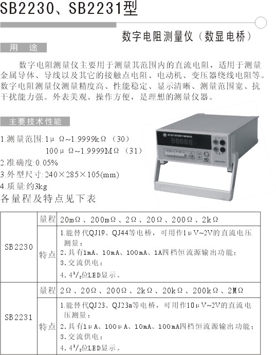 SB2231 直流數字電阻測量儀 100μΩ~1.9999kΩ 0.05%