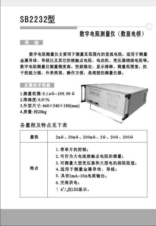 SB2232 直流數字電阻測量儀 0.1μΩ~0.19999kΩ 0.05%