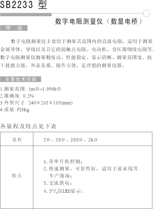 SB2233 直流數字電阻測量儀 1mμΩ~1.999kΩ 0.20%