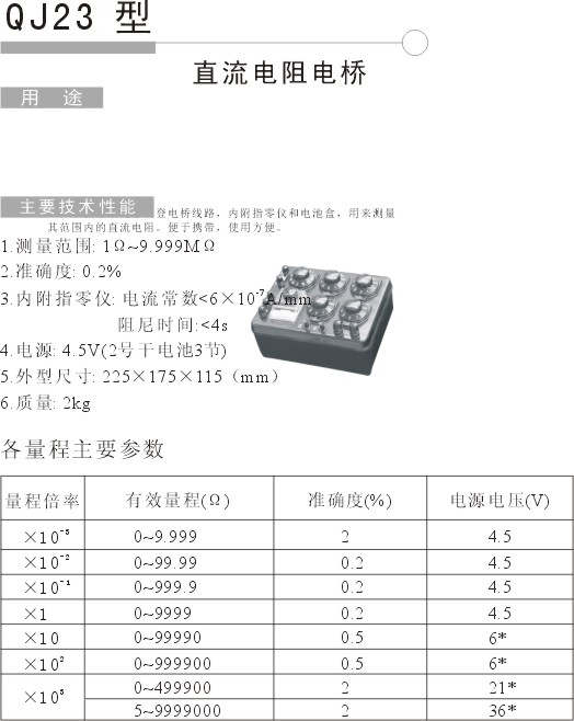 | QJ36F | 直流電阻測(cè)試量?jī)x | 0.01MΩ-2.5kΩ |