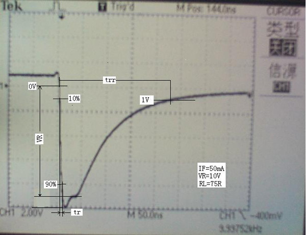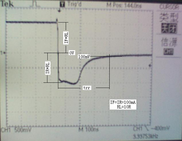 4)用示波器檢定trr的準確度時, 樣管的恢復波形在trr讀出點附近不應有振蕩波,否則影響trr準確度的判斷。