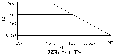 按“確定”認可本頁顯示的數據并轉第3頁。 按“選擇”轉另一行的修改,←也移到另一行。 在箭頭←指相應欄時,按“設置”鍵,可按數字和小數點鍵重新設定數據。按“確定”存儲所作的修改。 VRm和IRm的檔位是根據輸入數據自動設置的,不需人為干預。 VRm只認可1位小數,多余小數將被刪除。VRm設置范圍是15-1200V。(為電子業設計的款式為15-2000V) IRm即為報警閥值,在報警開啟時,測得IR超出IRm即發出報警聲。在報警未開時則不報警。 第二頁方式1(測試VR)的顯示: VRn (反向電壓起始值 V) | 數據 ← | VRm (反向電壓結束值 V) | 數據 | IRm (反向電流限定值 uA) | 數據 |
