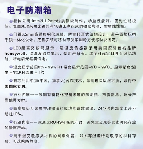 選擇適合的防潮箱 1.察看防潮的濕度范圍 2.內部容積,隔板,是否適合您需求,隔板可以增加. 3.常規款,防靜電款. 4.如有特殊需要,需用304不銹鋼制作,請提前告之,可訂做. 聯系電話,021-6573 0171 |