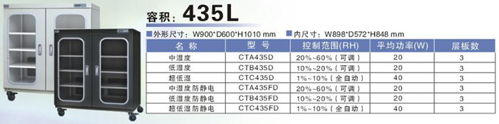 CTC435D 超低濕度防潮箱 1-10% 435L 898*572*848 3 900*600*1010 同上