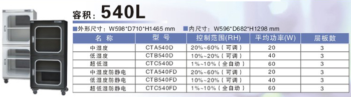 CTC540D 超低濕度防潮箱 1-10% 540L 596*682*1298 3 598*710*1465 同上