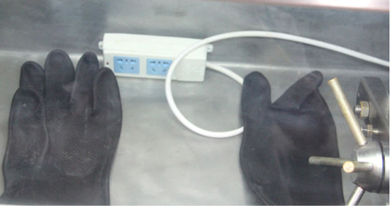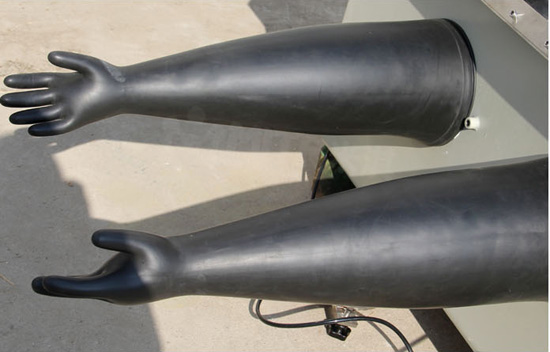 操作手套采用厚乳膠手套,密封可靠。
