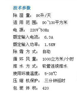 型號 名稱 除濕量 適用面積 額定功率 機身尺寸 電壓