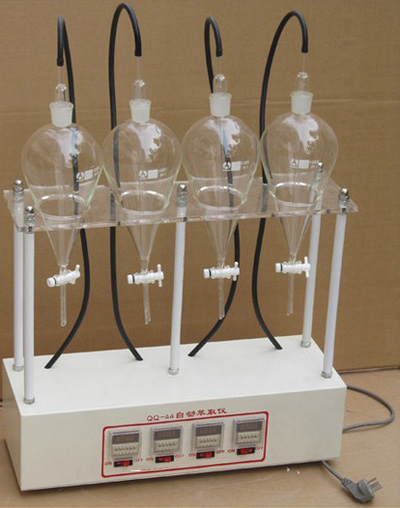 8QQ-44型每臺儀器有四套玻璃儀器,四只氣泵,四只定時表。每組玻璃儀器可單獨使用,獨立工作,互不串氣;定時也可單獨使用,獨立工作,互不影響。