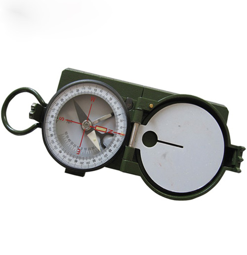 DQL-6軍用指北針,羅盤儀廣泛應用于于交通、遠洋、林業、戡察、探險等眾多領域,并為軍事愛好者、發燒友等群體所青睞。羅盤儀主要由羅盤、里程計兩部分構成。 羅盤部分有提環,度盤座,在度盤座上劃有兩種刻線、外圈為360度分劃制,每刻線為1度。內圈為6000(密位)分劃制,圓周共刻300刻線.每刻線線值為20(密位),內有磁針,測角器,俯仰角度的分劃單位為度.每刻線為25度.可測量俯仰角度士60度。里程計部分主要由里程分劃表、速度時間表、測輪、齒輪指針等組成。里程分劃有l:50000,l:100000兩種比例尺刻度值。1:100000比例尺每刻線相應代表1公里。 l:50000每刻線相應代表0.5公里.可與具有相應比例或成倍比例的地圖配合使用。速度時間表分劃有外側表盤上有13、15、17、19、21、23、25公里/小時,內側表盤上有10、14、16、18、20、22、24、30公里/小時。(以V代表),共15種速度。時間刻度中每一刻線相應代表5分鐘(V25為10分鐘)。 儀器的側面有測繪尺,兩端為距離估定器。估定器兩尖端長12.3毫米,照準與準星間長為123毫米.即為尖端長的10倍。
