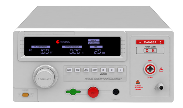 2、硬件過零啟動、過零關斷,可防止電壓過沖對被測試件的損壞。 3、DANGER指示燈功能:為確保操作者的安全,測試儀采用了高亮紅色的Danger指示燈,該指示在耐壓儀啟動測試但是電壓輸出低于安全電壓以下時為閃爍,高于安全電壓時為常亮,即使耐壓儀處于停止測試狀態,若端口有大于安全電壓的電壓輸出該指示燈就會被點亮,以警示有高壓,不應當去接觸與H.V端口輸出的任何物件,以防觸電。 應用領域 1、元器件:二極管、三極管、高壓硅堆、各種電子變壓器、接插件、PCB線路板、高壓電容 2、家用電器:電視機、電冰箱、空調、洗衣機、除濕機、電熱毯、充電器等 3、絕緣材料:熱縮套管、電容器薄膜、高壓套管、絕緣紙、絕緣鞋、絕緣橡膠手套等 4、儀器儀表:示波器、信號發生器、直流電源、開關電源等 5、照明電器:鎮流器、道路燈、舞臺燈、手提燈等各類燈具 6、電動電熱器具:電鉆、手槍鉆、切割機、打磨機、研磨機、電焊機等 7、電線電纜:高壓線、光纜、電纜、硅橡膠電纜等 8、電機:旋轉電機 9、辦公設備:電腦、 驗鈔機、打印機、復印機等 適用標準 IEC60335、GB4706.1、UL60335 家用和類似用途電器的安全 第一部分:通用要求 UL60590、GB4943、IEC60590 信息技術設備 UL60065、GB8898、IEC60065 音頻、視頻及相似電子器械安全要求 IEC61010、GB4793.1 測量、控制和實驗室用電氣設備的安全要求 第1部分:通用要求 技術參數 技術規格 | 5050 | 5051 | 5052(Y) | 5053 | 5101 | 耐 壓 測 試 電 壓(kV) | 0.10~5.00 (AC) ±2% ±2個字 | 0.10~5.00 (AC & DC) ±2% ±2個字 | 0.10~5.00 (AC) ±2% ±2個字 | 0.10~5.00 (AC & DC) ±2% ±2個字 | 0.10~10.00 (AC & DC) ±2% ±2個字 | 漏電流測試范圍AC(mA) | 0.100~2.000/ 2.01 ~ 20.00/ 20.1 ~100.0 ±2% ± 2個字 | 0.100~2.000/ 2.01~20.00/ 20.1 ~100.0 ±2% ± 2個字 | 0.100~2.000/ 2.01~20.00 ±2% ± 2個字 | 0.100~2.000/ 2.01~20.00 ±2% ± 2個字 | 0.100~2.000/ 2.01~20.00 ±2% ± 2個字 | 漏電流設定范圍AC(mA) | 0.001 ~ 100.0 | 0.001 ~ 100.0 | 0.001 ~ 20.00 | 0.001 ~ 20.00 | 0.001 ~ 20.00 | 漏電流測試范圍DC(mA) | 無 | 0.100~1.999/ 2.01~20.00 ±2% ± 2個字 | 無 | 0.100~2.000/ 2.01~10.00 ±2% ± 2個字 | 0.100~2.000/ 2.01~10.00 ±2% ± 2個字 | 漏電流設定范圍DC(mA) | 無 | 0.001~20.00 | 無 | 0.001~10.00 | 0.001~10.00 | 耐壓測試時間(s) | 0.0 ~ 999 0 = 連續 | 電弧偵測 | 1 ~ 9級 (0 = 關閉,9 = 靈敏) | 工作條件 | 環境溫度:0~40°C,相對濕度:≤75%,大氣壓力:101.25kPa | 體積(mm3) | 320×150×340 | 320×150×340 | 重 量 | 20kg | 16kg | 供電電源 | 220V±10% 50Hz±2Hz |