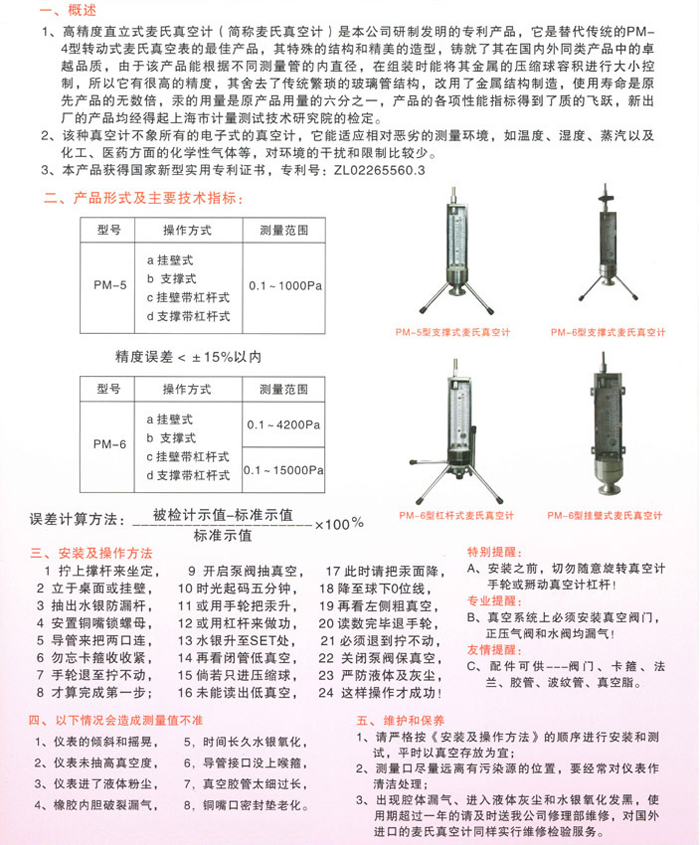 | PM-2 | 麥氏真空計 | 20000~0.1 | |