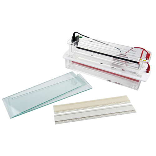 SCZF-A型 高通量垂直電泳槽 產品介紹 名稱:高通量垂直電泳槽 型號: SCZF-A 技術規格 玻璃面積(W×L):338×130(mm) 凝膠面積(W×L):306×115(mm) 凝膠厚度:1.0(mm);1.5(mm)(選配) 凝膠數量:1~2(塊) 樣品通量:(1.0mm厚)68、102齒;(1.5mm厚)68、102齒(選配) 緩沖液容積:~3500(ml) 外形尺寸(L×W×H):400×130×165(mm) 凈重:7.5(kg) 性能特點 ? 多配102齒加樣梳,可同時進行204個樣品試驗; ? 專門為種子純度檢測而設計,無邊緣電場干擾,確保電泳譜帶清晰順直; ? 可外接恒溫循環器,實現對電泳凝膠的溫度控制; ? 安全開蓋按鈕設計,方便上蓋的開啟; ? 可拆卸電極架,使電極的維修及更換更加方便,快捷、安全; ? 開蓋斷電結構及安全導線,使操作更加安全; ? 與新一代JY300C配合使用,可同時運行4~6個高通量電泳實驗。 產品用途 適用于種子檢測、生物學研究中,對核酸、蛋白樣品的分離、純化、制備等,分析型蛋白電泳滿足純度鑒定、復雜蛋白樣品的分析,同時也適用于核酸電泳。 配置清單 名稱 | 型號/規格 | 單位 | 數量 | 電泳槽主體(含電極) | SCZF-A | 臺 | 1 | 凹形玻璃板 | (W×L):338×130(mm) | 塊 | 4 | 矩形玻璃板 | (W×L):338×130(mm) | 塊 | 4 | 加樣梳 | 1.0mm厚,68齒 | 把 | 2 | 加樣梳 | 1.0mm厚,102齒 | 把 | 2 | 硅膠管 | 750px | 根 | 1 | 硅膠管 | 2000px | 根 | 2 | 夾子 | / | 個 | 13 | 電源導線 | 模具 | 付 | 1 | 產品說明書 | / | 份 | 1 | 用戶手冊 | / | 份 | 1 |