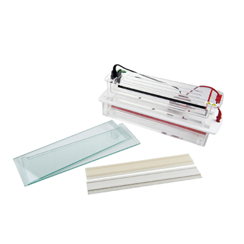 性能特點 ? 多配102齒加樣梳,可同時進行204個樣品試驗; ? 專門為種子純度檢測而設計,無邊緣電場干擾,確保電泳譜帶清晰順直; ? 安全開蓋按鈕設計,方便上蓋的開啟; ? 可拆卸電極架,使電極的維修及更換更加方便,快捷、安全; ? 開蓋斷電結構及安全導線,使操作更加安全; ? 與新一代JY300C配合使用,可同時運行4~6個高通量電泳實驗。 產品用途 適用于種子檢測、生物學研究中,對核酸、蛋白樣品的分離、純化、制備等,分析型蛋白電泳滿足純度鑒定、復雜蛋白樣品的分析,同時也適用于核酸電泳。 配置清單 名稱 | 型號/規格 | 單位 | 數量 | 電泳槽主體(含電極) | SCZF | 臺 | 1 | 凹形玻璃板 | (W×L):338×110(mm) | 塊 | 4 | 矩形玻璃板 | (W×L):338×110(mm) | 塊 | 4 | 加樣梳 | 1.0mm厚,68齒 | 把 | 2 | 加樣梳 | 1.0mm厚,102齒 | 把 | 2 | 硅膠管 | 750px | 根 | 1 | 夾子 | / | 個 | 13 | 電源導線 | 模具 | 付 | 1 | 產品說明書 | / | 份 | 1 | 用戶手冊 | / | 份 | 1 |