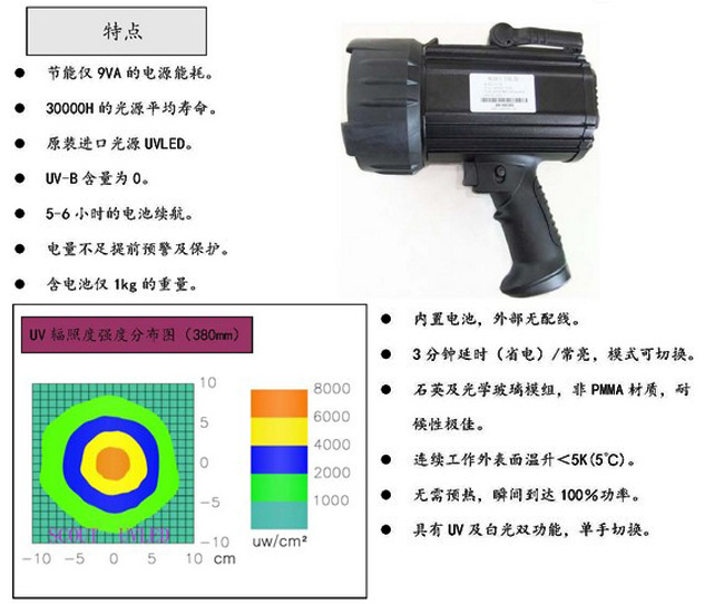 | UV5064-8K | 探傷燈,黑光燈 | 常用 | 8000uW/cm2 | 500*640mm | <20lux |
