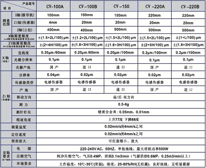 | CV-H220B | 粗糙度輪廓儀 | 220mm | 20mm | Ra:0.005-16um | ±20,40,80um | 更優光柵尺 |