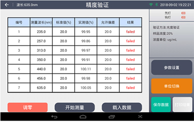 波長重復性:≤0.2nm 光度精度: ±0.002A(0-0.5Abs) 、 ±0.004A(0.5-1.0Abs) ±0.3%T (0-100%T) 光度重復性:0.001Abs(0-0.5Abs)、0.002Abs(0.5-1.0Abs) ≤0.1%T (0-100%T) |