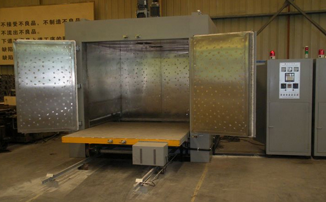這款臺車式,是帶有軌道的,自動進料.內膽的尺寸,大小可以根據你們生產的具體要求做.大20,30方都可以做,是成熟產品.
