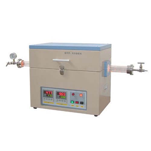 OTF-1200X-II系列 1200℃雙溫區(qū)管式爐 OTF-1200X-II系列是通過CE認(rèn)證的雙溫區(qū)管式爐,其高溫可達(dá)到1200℃,并可通過調(diào)節(jié)兩個(gè)溫區(qū)的控溫程序使?fàn)t管內(nèi)溫場(chǎng)形成一溫度梯度。兩個(gè)溫區(qū)分別由兩個(gè)獨(dú)立的溫控系統(tǒng)來控制,而且都為PID30段程序化控溫。此系列管式爐可以用CVD方法來生長(zhǎng)納米材料和制作各種薄膜. 技術(shù)參數(shù) 產(chǎn)品型號(hào) | OTF-1200X-II-50 | OTF-1200X-II-60 | OTF-1200X-II-80 | OTF-1200X-II-100 | 爐管規(guī)格 | 外徑dia50mmX dia44mmX1000mm | 外徑dia60X 內(nèi)徑dia54X1000mm | 外徑dia80X 內(nèi)徑dia74X1000mm | 外徑dia100X 內(nèi)徑dia94X1000mm | 爐體結(jié)構(gòu) | 雙層殼體結(jié)構(gòu)+風(fēng)冷結(jié)構(gòu),確保爐體表面溫度<60℃ | 內(nèi)爐膛表面涂有美國(guó)進(jìn)口的高溫氧化鋁涂層可以提高設(shè)備的加熱效率,同時(shí)也可以延長(zhǎng)爐膛的使用壽命 | 工作電壓 | 單相 AC 208 - 240V, 50/60Hz | 大功率 | 4kw | 加熱原件 | 鉬鐵鉻鋁電阻絲,電阻絲表面涂有美國(guó)進(jìn)口的氧化鋯涂層 | 工作溫度 | 高溫度: 1200℃ (使用時(shí)必須通入惰性氣體以防止?fàn)t管發(fā)生形變) | 工作溫度: 1100℃ | 推薦升溫速率:≤ 20℃ /min | 真空密封 | 儀器標(biāo)配中有一套304不銹鋼真空密封法蘭,出氣和進(jìn)氣端都安裝有不銹鋼截止閥 | 真空度:10-2 torr (用機(jī)械泵 ) 10-5 torr(用分子泵 ) | 需用KF25口徑的不銹鋼真空法蘭 | 為了放樣和取樣方便,可選用疊型法蘭 | 可選:鉸鏈?zhǔn)椒ㄌm和進(jìn)口的數(shù)字式真空計(jì) | 加熱區(qū) | 兩個(gè)溫區(qū)每個(gè)溫區(qū)的長(zhǎng)度為200mm | 總溫區(qū)長(zhǎng)度 | 400mm | 控制方式 | 模糊PID控制和自整定調(diào)節(jié)功能; | 智能化30段可編程控制; | 具有超溫及斷偶報(bào)警功能; | 控溫儀表操作視頻 | 控溫精度 | ±1 ℃ | 配件 | K型熱電偶,可安裝PC控制軟件對(duì)數(shù)據(jù)進(jìn)行實(shí)時(shí)采集(需另購(gòu)) | 外形尺寸 | 590x380x520mm 爐體 |