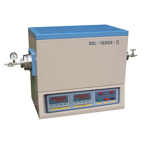 GSL-1600X-60-II 1600℃雙溫區(qū)管式爐 GSL-1600X-60-II是一款CE認(rèn)證的雙溫區(qū)高溫管式爐,每個(gè)加熱區(qū)長(zhǎng)度12”,由30段智能溫度調(diào)節(jié)儀進(jìn)行控溫,溫度達(dá)到1600度時(shí)加熱元件采用硅鉬棒,溫度在1400度時(shí)加熱元件采用硅碳棒,可通過調(diào)節(jié)兩個(gè)溫區(qū)的控溫程序使?fàn)t管內(nèi)溫場(chǎng)形成一溫度梯度,此系列管式爐可以用CVD或PVD方法來生長(zhǎng)納米材料和制作各種薄膜. 技術(shù)參數(shù) 殼體結(jié)構(gòu) | 雙層殼體結(jié)構(gòu),并帶有風(fēng)冷系統(tǒng),使得殼體表面的溫度小于60度 | 爐膛保溫材料采用高純氧化鋁多晶纖維,減少熱量的損失 | 內(nèi)爐膛表面涂有美國(guó)進(jìn)口的高溫氧化鋁涂層可以提高設(shè)備的加熱效率,同時(shí)也可以延長(zhǎng)儀器的使用壽命 | 功率 | 9 KW | 電壓 | AC 220-240 單相, 50/60 Hz | 加熱區(qū)長(zhǎng)度 | 兩個(gè)溫區(qū)分別進(jìn)行加熱 | 溫區(qū)1: 工作溫度 800 - 1400oC (硅碳棒加熱) | 加熱區(qū)長(zhǎng)度: 12" (300 mm) | 恒溫區(qū)長(zhǎng)度: 4" (100mm) within ±1oC | 升溫速率: 20oC/min | 溫區(qū)2: 工作溫度 800 - 1600oC(硅鉬棒加熱) | 加熱區(qū)長(zhǎng)度: 12" (300 mm) | 恒溫區(qū)長(zhǎng)度: 4" (100mm) within ±1oC | 升溫速率: 10oC/min | 爐管尺寸和法蘭 | 純度99.8% 的氧化鋁陶瓷管 | (60mm) O.D. x 2-1/8" (54mm) I.D x 40" (1000 mm) Length | 包括60mm不銹鋼真空密封法蘭,針閥,和壓力表 | 擴(kuò)展接口 | 如想增加抽氣速率以便獲得較高的真空,建議您將標(biāo)配的軟管接頭更換成theKF25 adapter轉(zhuǎn)接頭. | 如需要在惰性或還原性氣體條件下使用,建議您將標(biāo)配的軟管接頭更換成VCR 雙卡套接頭 | 溫控系統(tǒng) | PID智能化溫度控制器,可以設(shè)置30段升降溫程序 | 每個(gè)溫區(qū)可以獨(dú)立的設(shè)置,帶有過熱和斷偶保護(hù) | 熱電偶 | 2根B型 | 控制方法 | PID 自動(dòng)控制 | 控溫精度 | ± 1oC | 加熱元件 | 溫區(qū)1: 8 pcs U type SiC rods (1500C grade ) | 溫區(qū)2: 8 pcs U MoSi2 rods (1700C grade ) | 外形尺寸 | 780 L x 450 W x 720 H mm |