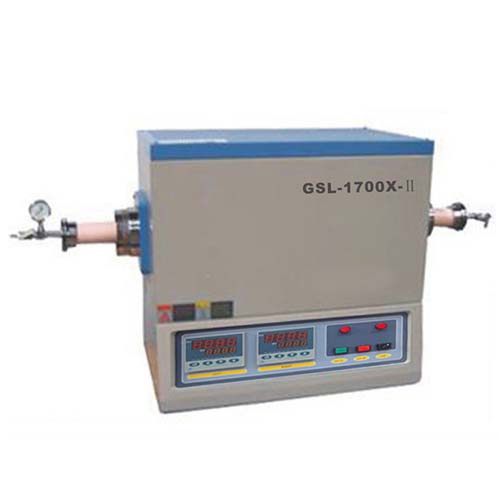 GSL-1700X-60-II 1700℃雙溫區(qū)管式爐 GSL-1700X-60-II是一款CE認(rèn)證的雙溫區(qū)高溫管式爐,每個(gè)加熱區(qū)長(zhǎng)度12’’,由30段智能溫度調(diào)節(jié)儀進(jìn)行控溫,溫度達(dá)到1700度時(shí)加熱元件采用硅鉬棒,溫度在1400度時(shí)加熱元件采用硅碳棒,可通過調(diào)節(jié)兩個(gè)溫區(qū)的控溫程序使?fàn)t管內(nèi)溫場(chǎng)形成一溫度梯度,此系列管式爐可以用CVD或PVD方法來生長(zhǎng)納米材料和制作各種薄膜。 技術(shù)參數(shù) 殼體結(jié)構(gòu) | 雙層殼體結(jié)構(gòu),并帶有風(fēng)冷系統(tǒng),使得殼體表面的溫度小于60度 | 爐膛保溫材料采用高純氧化鋁多晶纖維,減少熱量的損失 | 內(nèi)爐膛表面涂有美國(guó)進(jìn)口的高溫氧化鋁涂層可以提高設(shè)備的加熱效率,同時(shí)也可以延長(zhǎng)儀器的使用壽命 | 功率 | 9 KW | 電壓 | AC 220-240 單相, 50/60 Hz | 加熱區(qū)長(zhǎng)度 | 兩個(gè)溫區(qū)分別進(jìn)行加熱 | 溫區(qū)1: 工作溫度 800 - 1400oC (硅碳棒加熱) | 加熱區(qū)長(zhǎng)度: 12" (300 mm) | 恒溫區(qū)長(zhǎng)度: 4" (100mm) within ±1oC | 升溫速率: 20oC/min | 溫區(qū)2: 工作溫度 800 - 1700oC(硅鉬棒加熱) | 加熱區(qū)長(zhǎng)度: 12" (300 mm) | 恒溫區(qū)長(zhǎng)度: 4" (100mm) within ±1oC | 升溫速率: 10oC/min | 爐管尺寸和法蘭 | 純度99.8% 的氧化鋁陶瓷管 | (60mm) O.D. x 2-1/8" (54mm) I.D x 40" (1000 mm) Length | 包括60mm不銹鋼真空密封法蘭,針閥,和壓力表 | 擴(kuò)展接口 | 如想增加抽氣速率以便獲得較高的真空,建議您將標(biāo)配的軟管接頭更換成theKF25 adapter轉(zhuǎn)接頭. | 如需要在惰性或還原性氣體條件下使用,建議您將標(biāo)配的軟管接頭更換成VCR 雙卡套接頭 | 溫控系統(tǒng) | PID智能化溫度控制器,可以設(shè)置30段升降溫程序 | 每個(gè)溫區(qū)可以獨(dú)立的設(shè)置,帶有過熱和斷偶保護(hù) | 熱電偶 | 2根B型 | 控制方法 | PID 自動(dòng)控制 | 控溫精度 | ± 1oC | 加熱元件 | 溫區(qū)1: 8 pcs U type SiC rods (1500C grade ) | 溫區(qū)2: 8 pcs U MoSi2 rods (1800C grade ) | 外形尺寸 | 780 L x 450 W x 720 H mm | 凈重 | 150 kg |